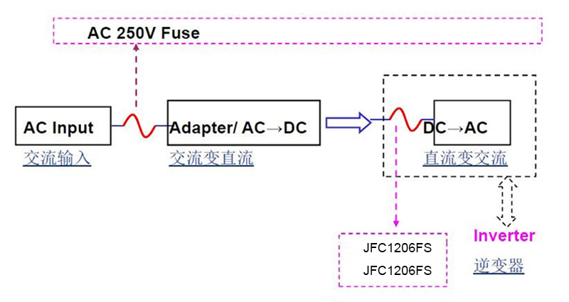 貼片一次性保險絲在筆記本逆變器上的應用實例: